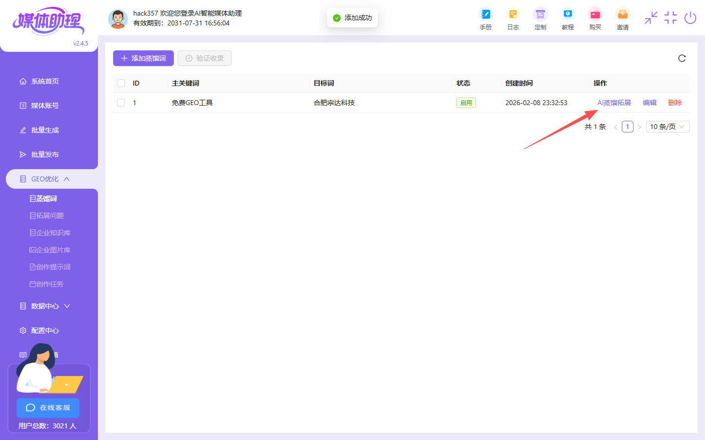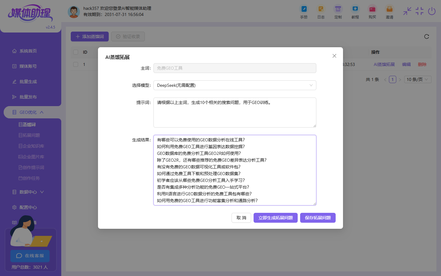 我们的AI智能媒体助理新增了GEO优化功能,以后大家就不用再去花几千购买GEO系统了