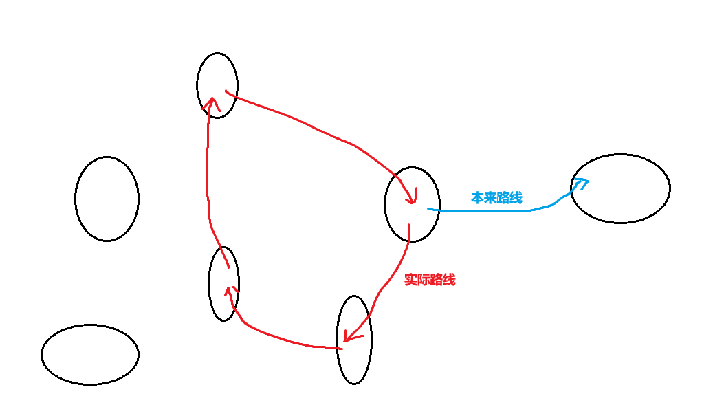 我们要知道路由器这种网络设备肯定是有BUG的,即使是Linux也是有BUG的,那么当一台主机向目标主机发送消息时,如上图所示,一个路由器因为BUG,将应该发往正确路线的消息发到了错误路线的路由器手中,并且由于这个问题,报文最终甚至又发回到了发送方主机手中。