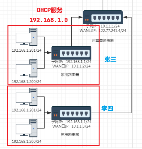 那么上面的为什么家用路由器内置的子网地址是相同的问题这里就可以解答了,那就是:家庭的私有IP地址只在家用路由器所构建的子网中有效,出了这个子网就无效了,因为会被替换,所以并不会影响到其他家庭的子网,相同又如何呢?