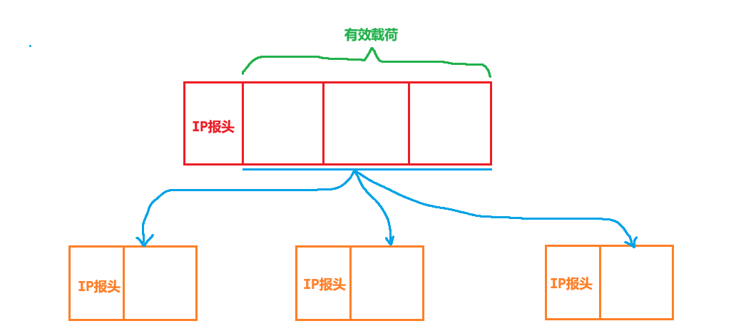 分片简单来讲就是将原IP报文的有效载荷分为多个部分,并且这里我们就要输出第二个结论:分片不是简单的对IP报文进行分片,而是要对每一片都添加IP报头。
