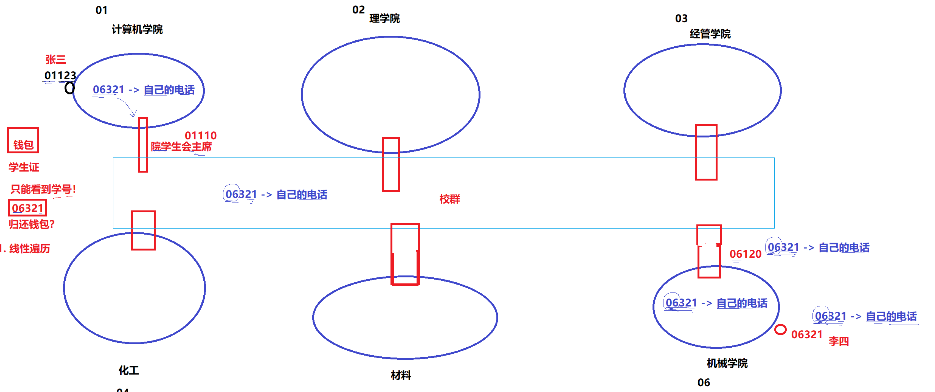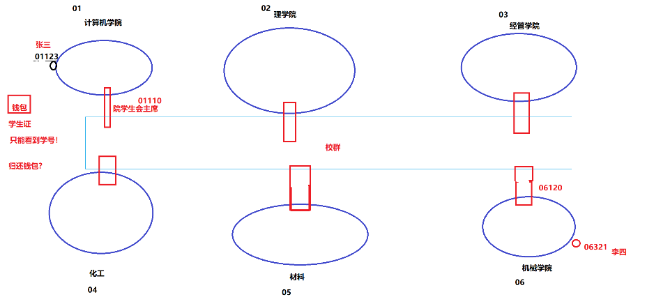 那么某一天计算机学院的一名学生:张三,在操场上捡到了一个钱包,里面有一张学生证,但因为磨损的原因,只能够看到学号是:06321,也就是机械学院的李四,但是张三不知道啊,他连自己学院的学号有时还记不清楚,更别说其他学院的学号了。