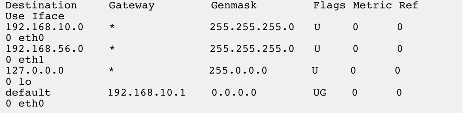 3.由于192.168.56.0/24正是与eth1接⼝直接相连的⽹络,因此可以直接发到⽬的主机,不需要经路由器转发