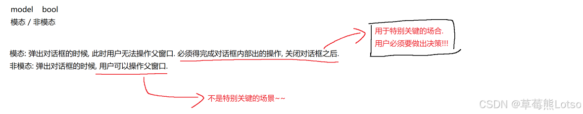 - 核心特性:对话框显示后,父窗口完全不可交互,必须关闭对话框才能回到父窗口,属于 "阻塞式" 交互;