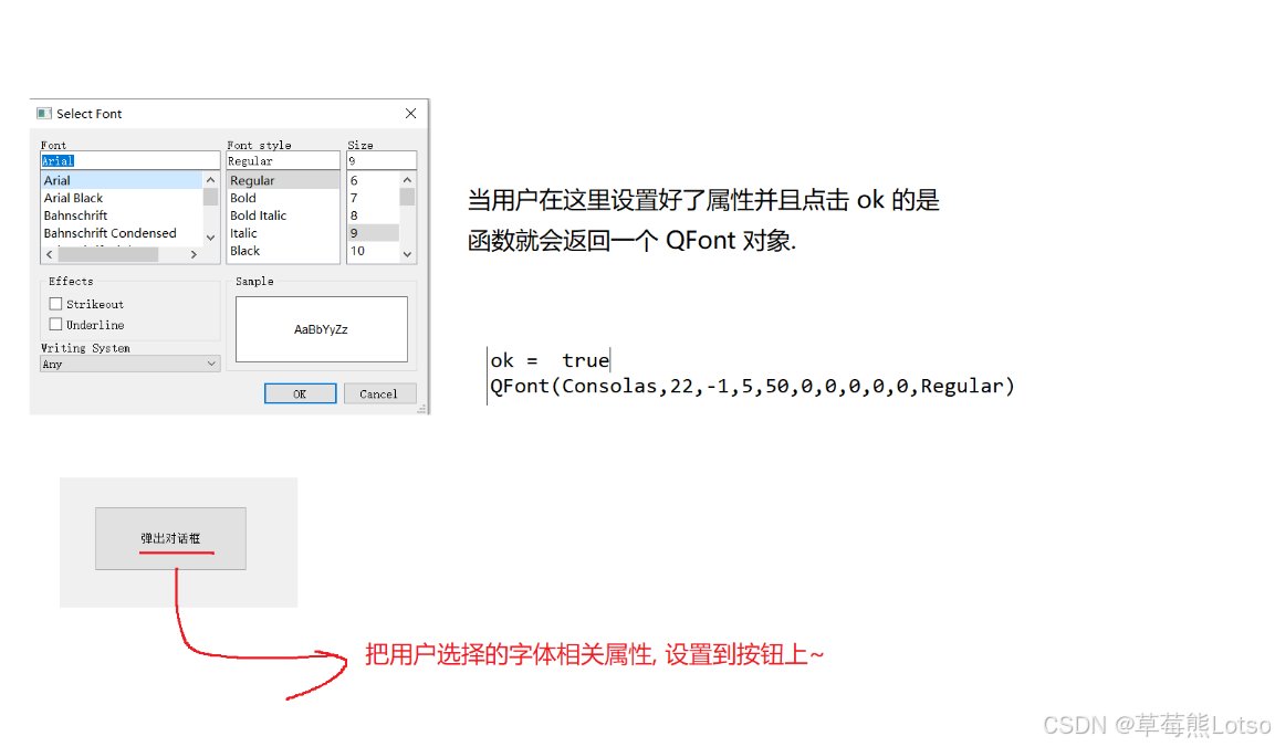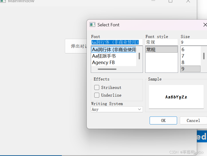 2.4 字体对话框(QFontDialog):字体样式设置