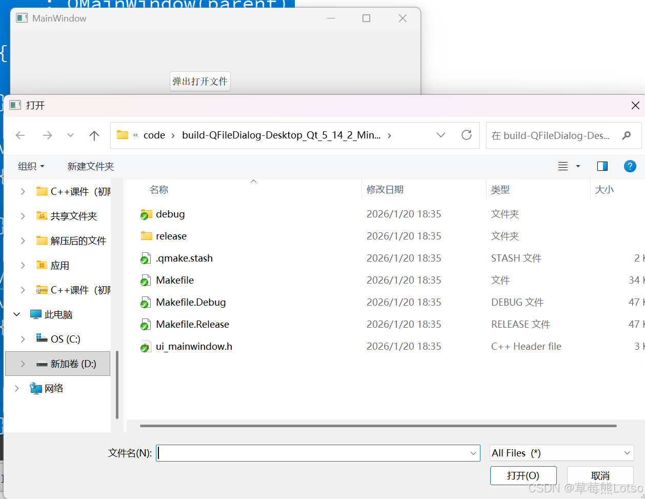exec()阻塞期间,对话框不会被销毁,关闭后自动释放栈内存,更简洁; - 文件对话框路径分隔符 :Qt 支持