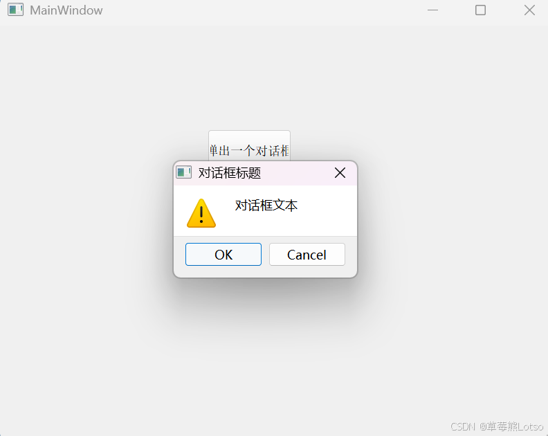int result = QMessageBox::warning(this, "对话框标题", "对话框文本", QMessageBox::Ok | QMessageBox::Cancel);