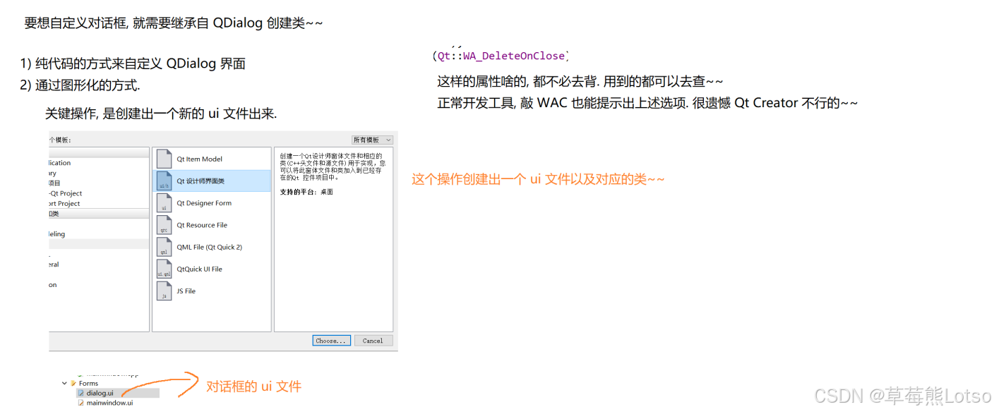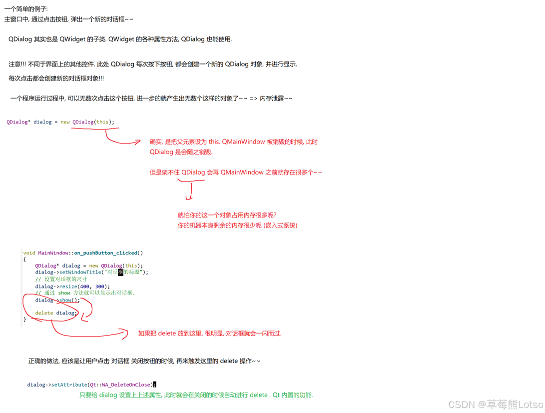Qt::WA_DeleteOnClose避免内存泄漏; - 模态对话框可栈上创建 :