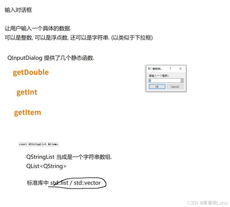 int result = QInputDialog::getInt(this, "整数输入对话框", "请输入一个整数: ");\