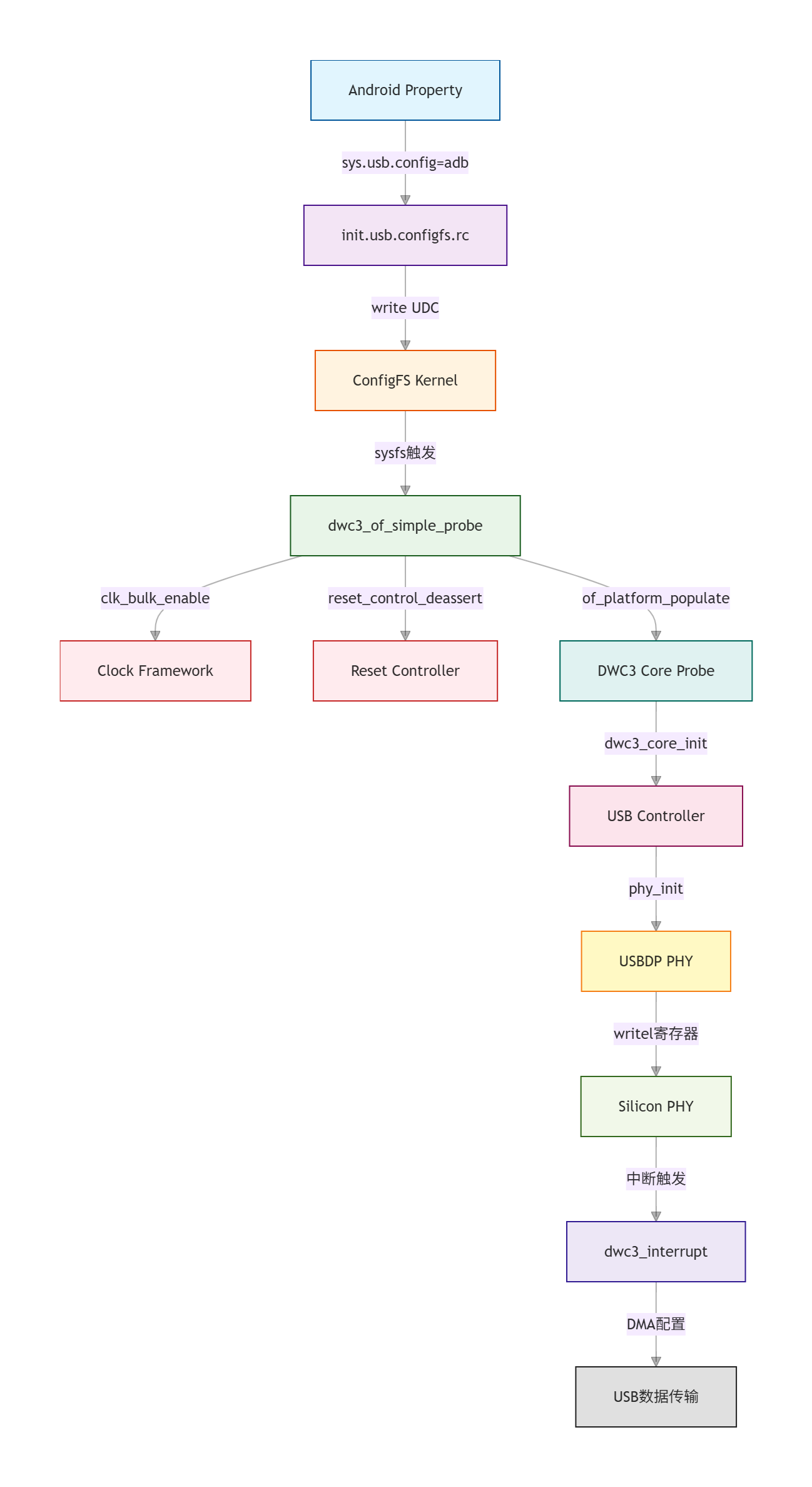USB DWC3 是Synopsys DesignWare USB 3.0 Dual-Role控制器,RK3588采用**rockchip,rk3588-dwc3兼容方案,通过ConfigFS**实现动态USB功能配置,支持USB 3.0/2.0双模式切换。