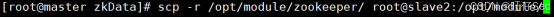 [root@master ~]# scp -r /opt/module/zookeeper root@slave2:/opt/module/
