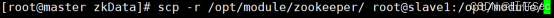 [root@master ~]# scp -r /opt/module/zookeeper root@slave1:/opt/module/
