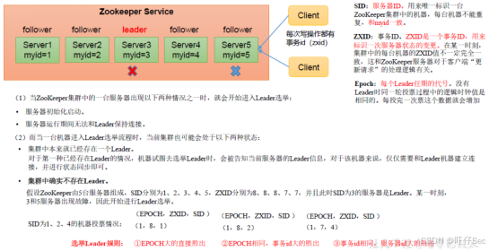 - 若 Leader 宕机,剩余 Follower 重新发起选举。