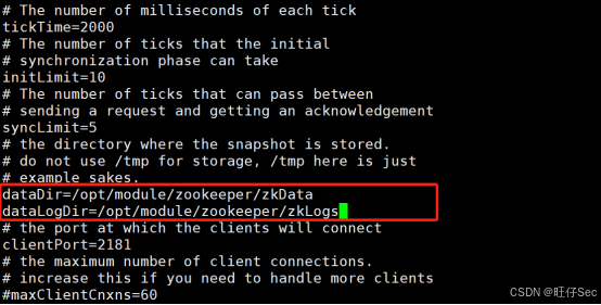 inidataLogDir=/opt/module/zookeeper/zkLog
