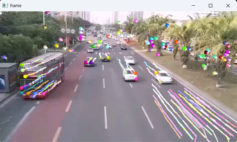 p1,st,err=cv2.calcOpticalFlowPyrLK(old_gray,gray,p0,None,winSize=(15,15),maxLevel=2)