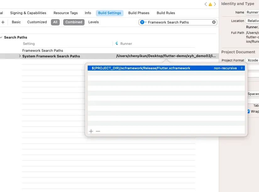 5.Build Setting > Framework Search Paths 添加路径 $(PROJECT_DIR)/xcframework/Release/Flutter.xcframework