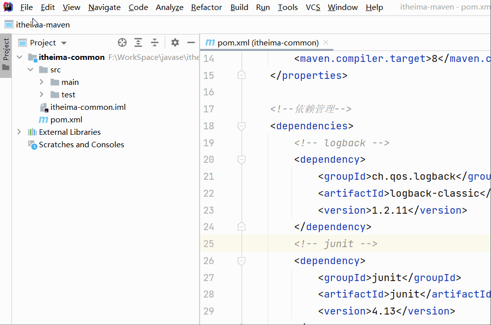 <dependencies> <dependency> <groupId>ch.qos.logback</groupId> <artifactId>logback-classic</artifactId> <version>1.2.11</version> </dependency> <dependency> <groupId>junit</groupId> <artifactId>junit</artifactId> <version>4.12</version> </dependency> </dependencies> -