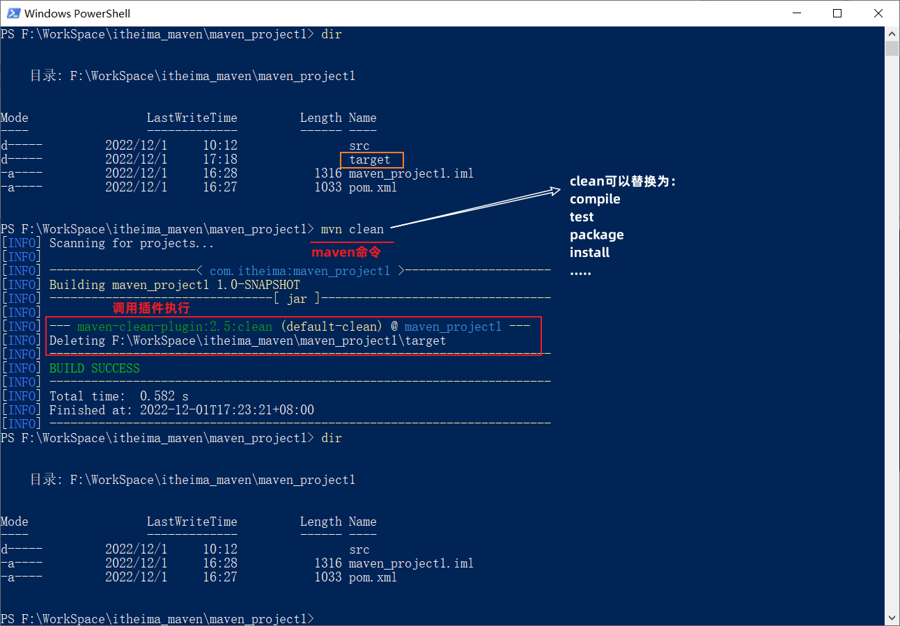我们需要关注的就是:clean --> compile --> test --> package --> install