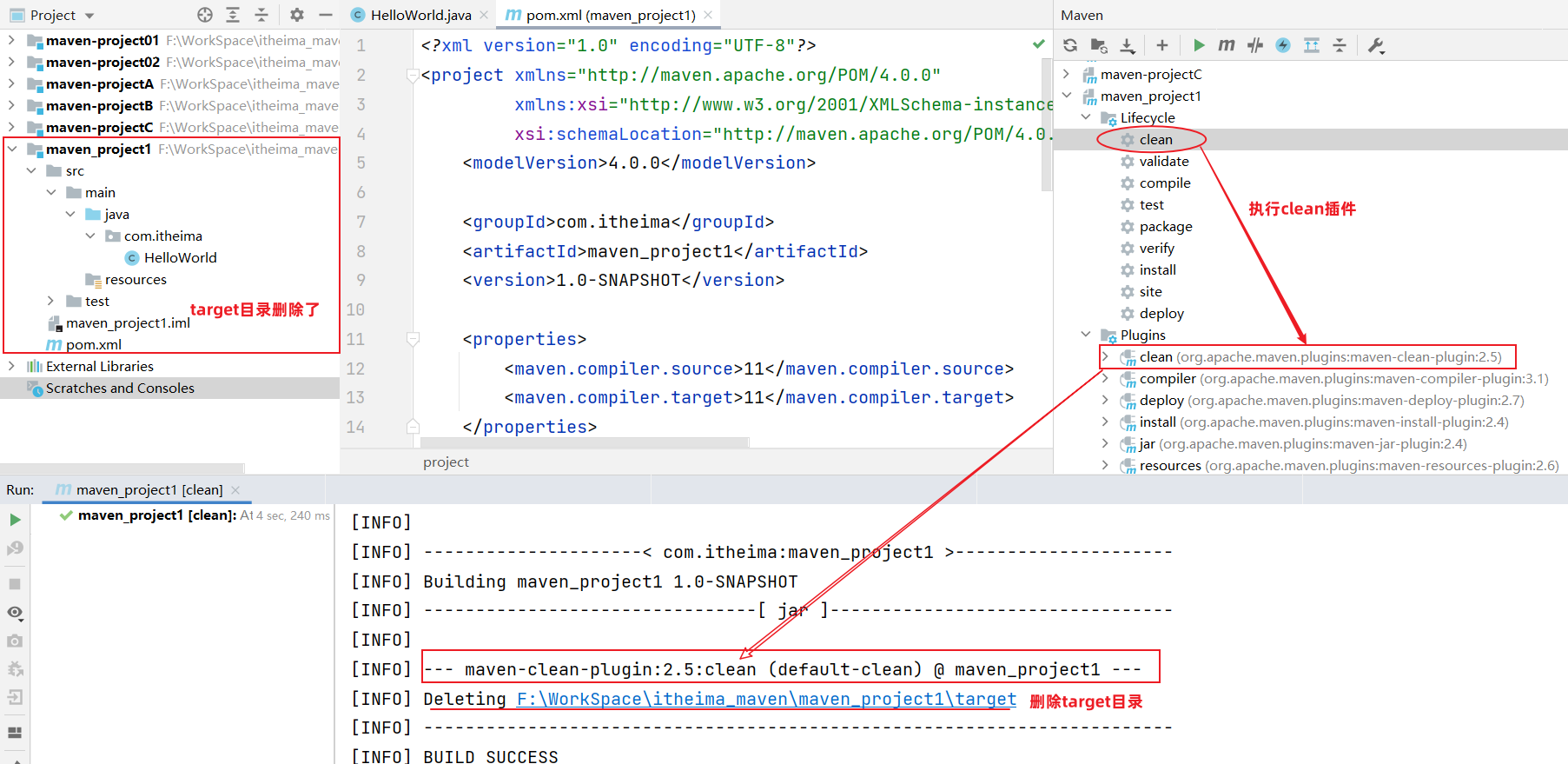 生命周期的顺序是:clean --> validate --> compile --> test --> package --> verify --> install --> site --> deploy