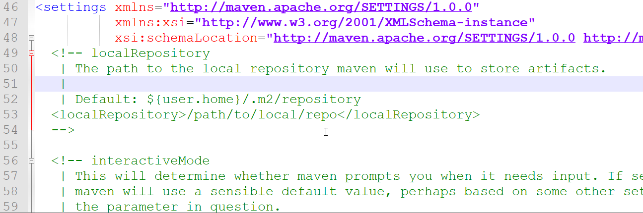 1). 使用超级记事本软件,打开settings.xml文件,定位到53行