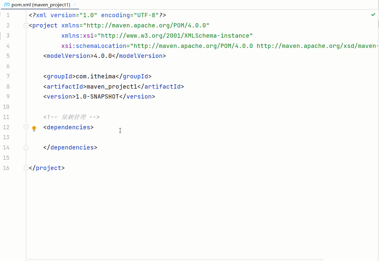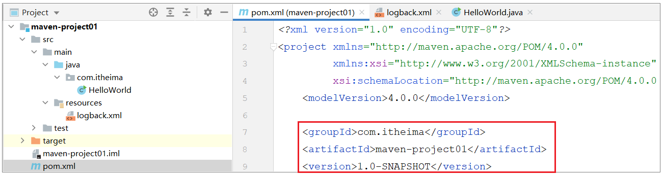 以上图中紫色框起来的部分属于项目对象模型,就是将我们自己的项目抽象成一个对象模型,有自己专属的坐标,如下图所示是一个Maven项目: