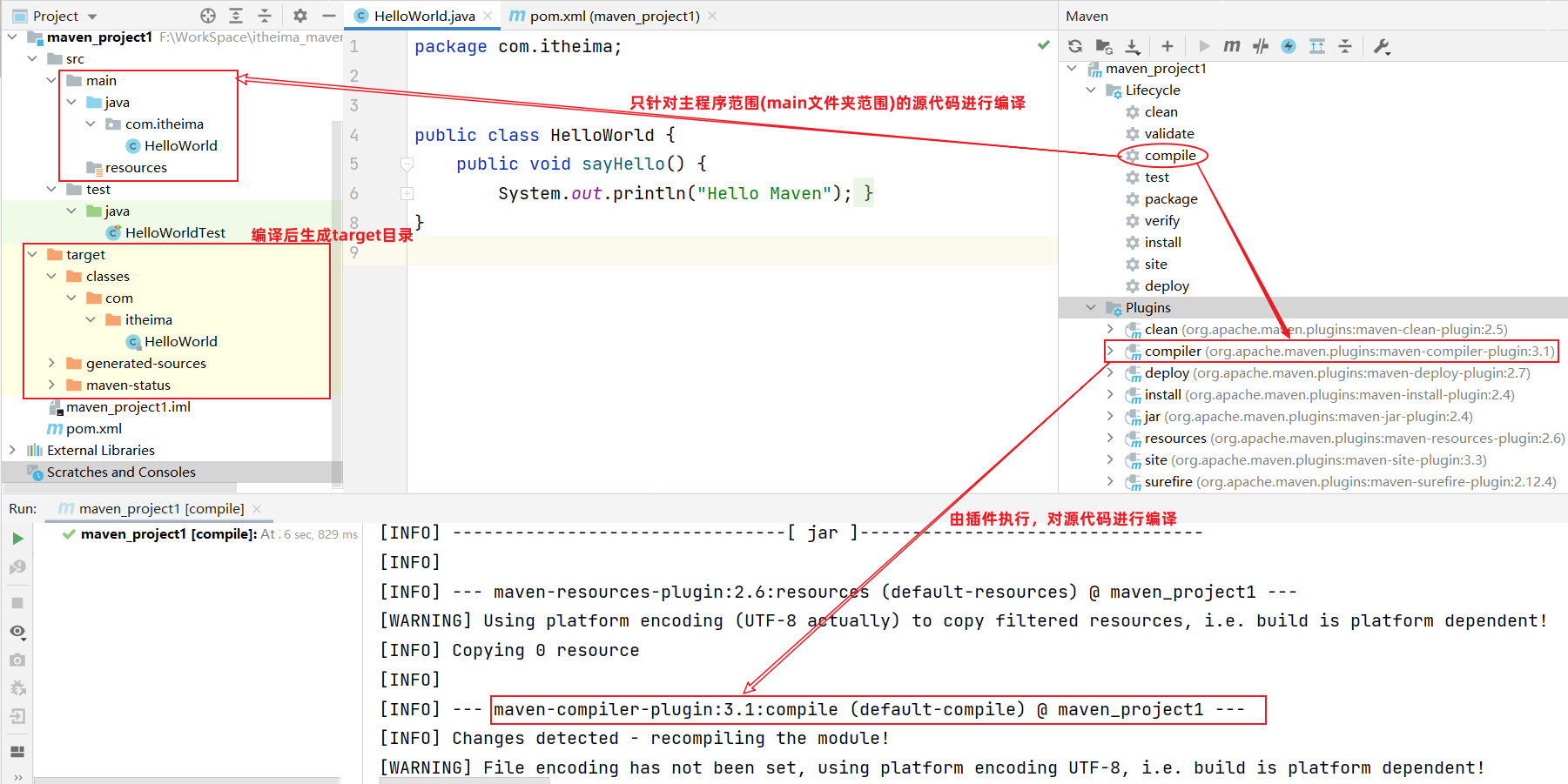 clean不会运行,compile会运行。 因为compile与package属于同一套生命周期,而clean与package不属于同一套生命周期。