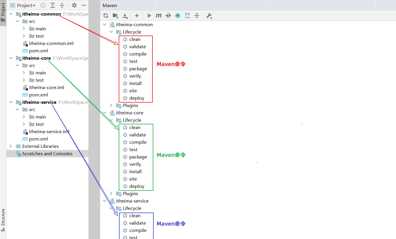 - 在idea工具右侧的maven工具栏中,选择对应的生命周期,双击执行