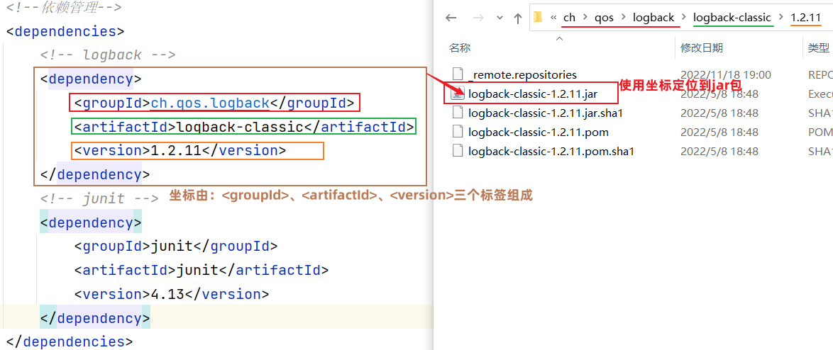 坐标,就是资源(jar包)的唯一标识,通过坐标可以定位到所需资源(jar包)位置