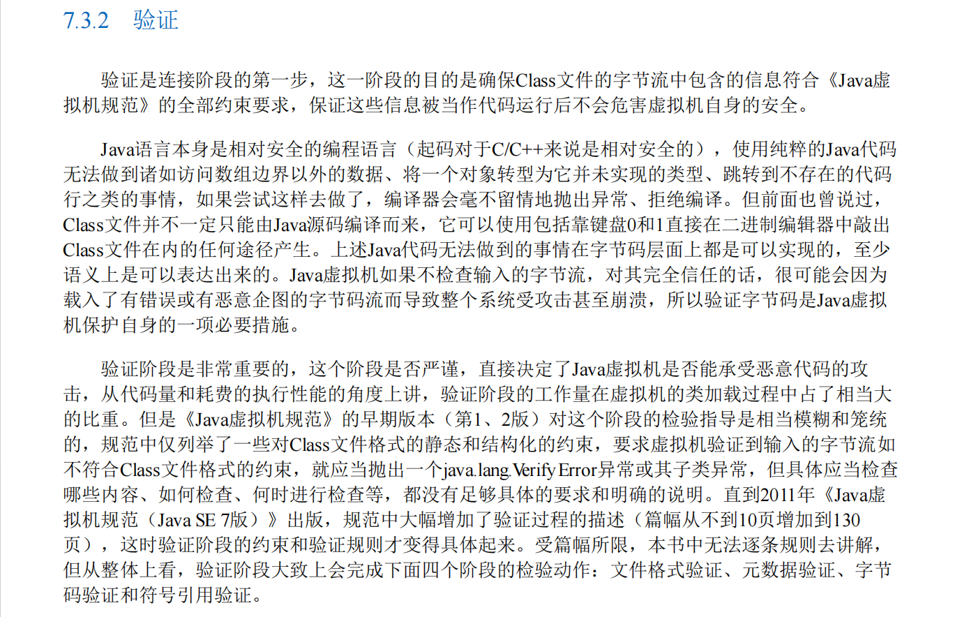 这是连接阶段的第一步,目的是确保加载的类符合《Java 虚拟机规范》,不会危害虚拟机自身安全。