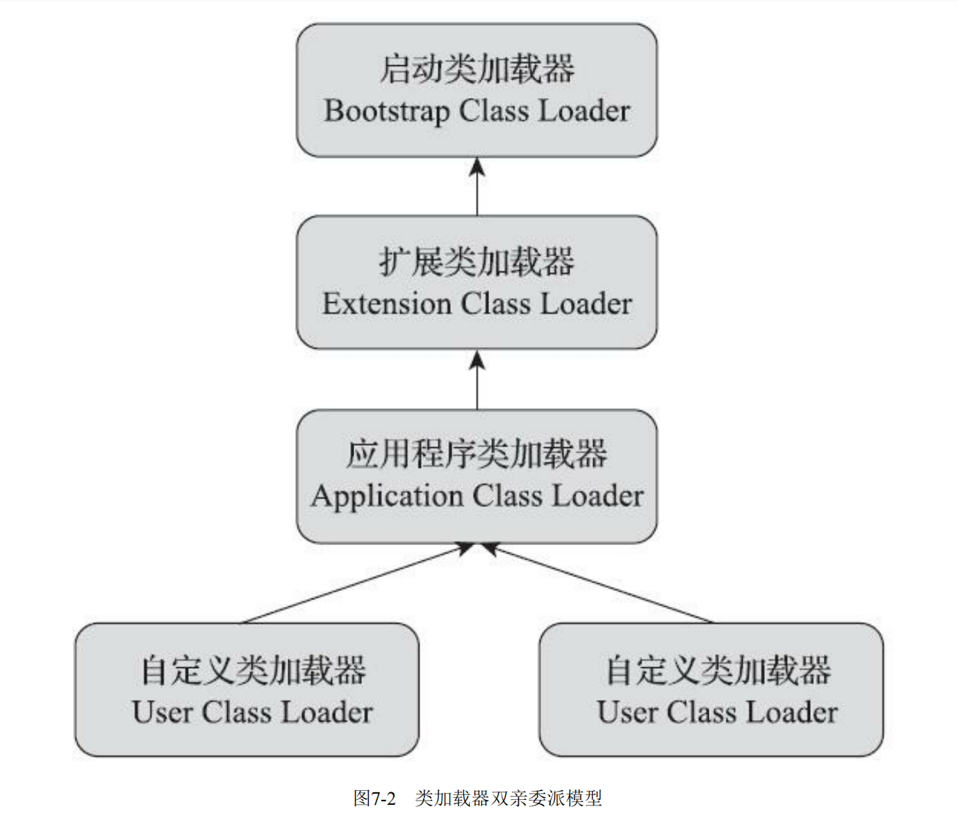 从 Java 开发人员视角(JDK 8 及之前),类加载器分为三层,采用双亲委派架构: