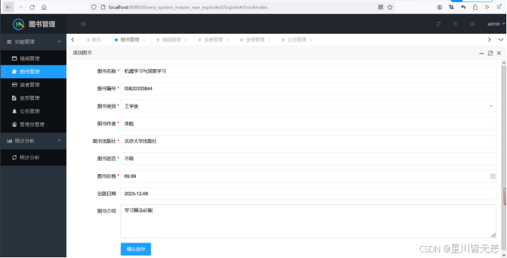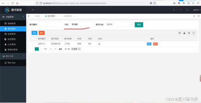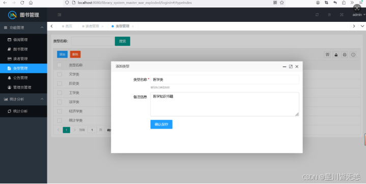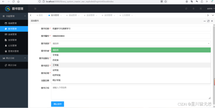 7.系统提供管理员图书管理,对图书或图书类别增删改查信息的功能。