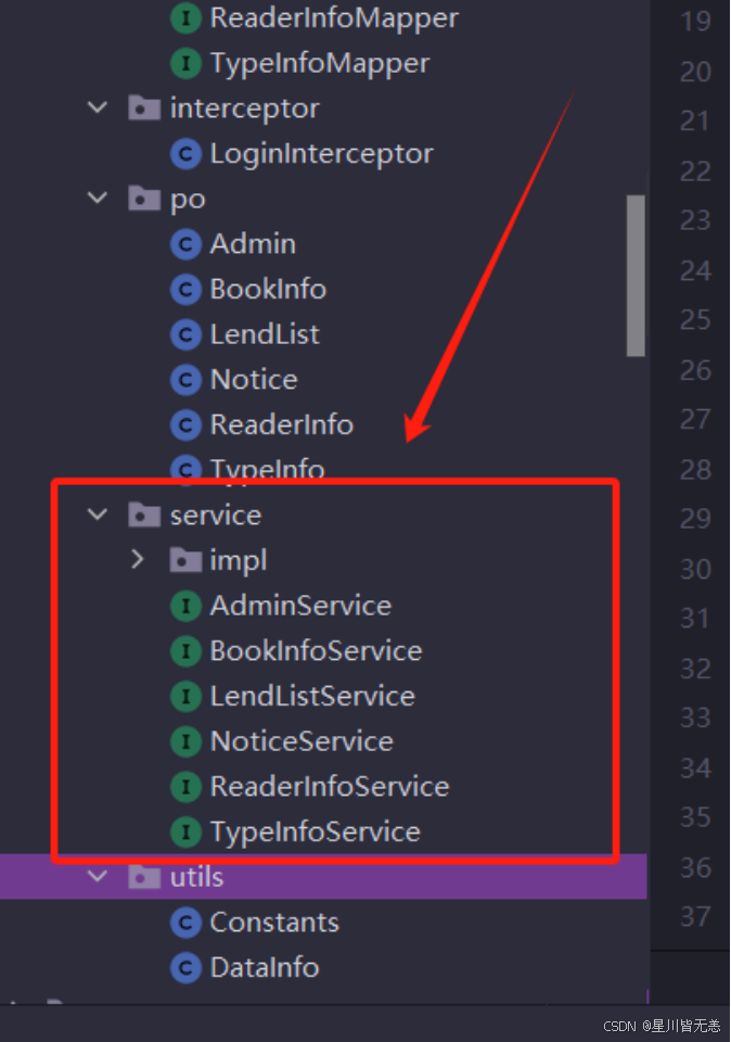 服务层包含用程序的业务逻辑。在这个目录下,存放一些服务接口和实现类,负责调用DAO层执行数据库操作,并对外提供业务逻辑的接口。