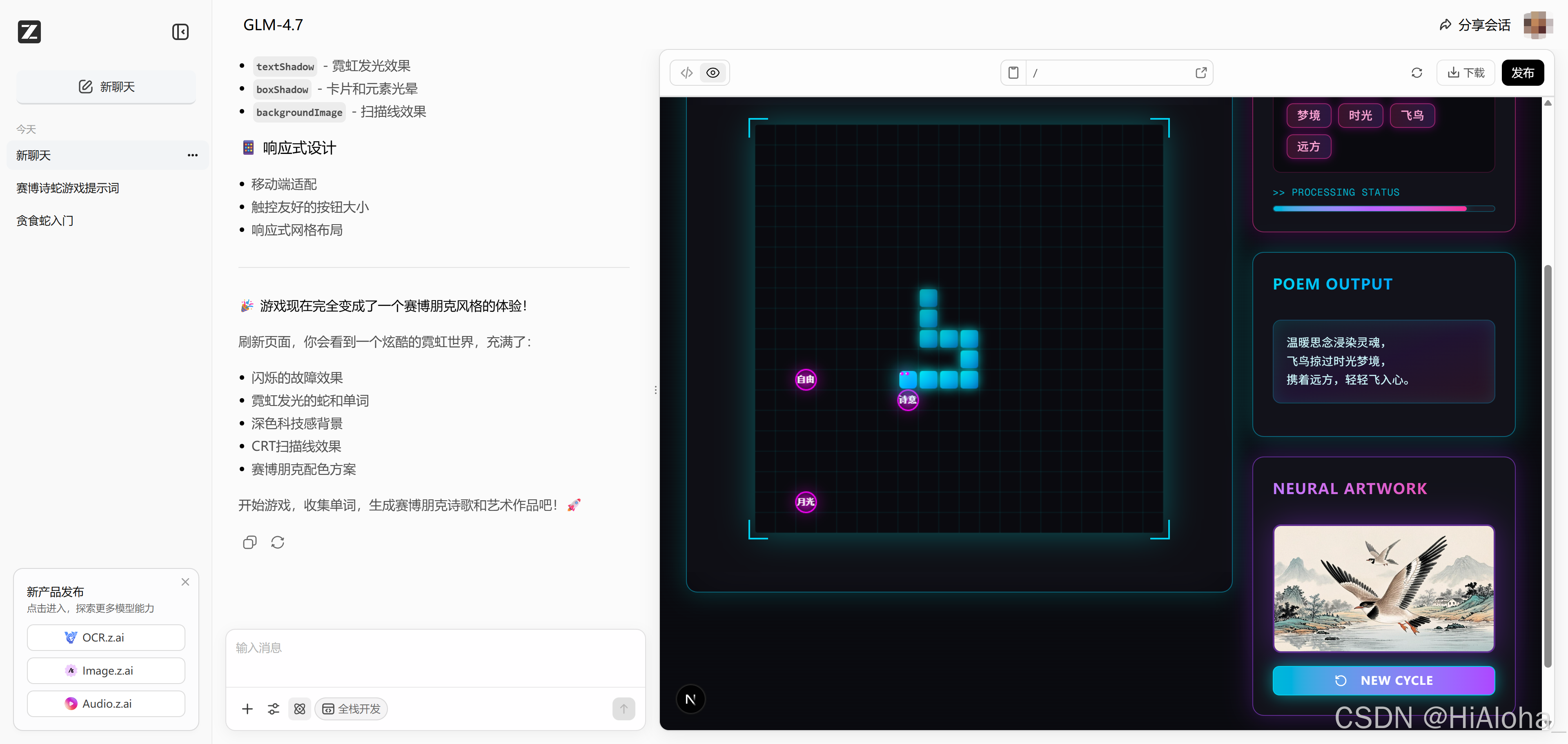 使用了智普提供的AI开发平台 z.ai 。