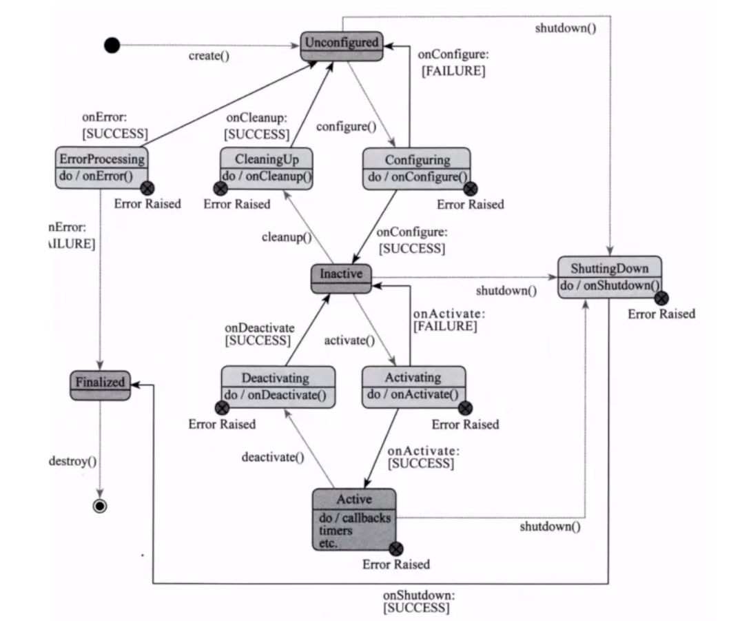 ROS2提供rclcpp_lifecycle库实现生命周期节点,核心类和接口如下(以C++视觉开发举例):
