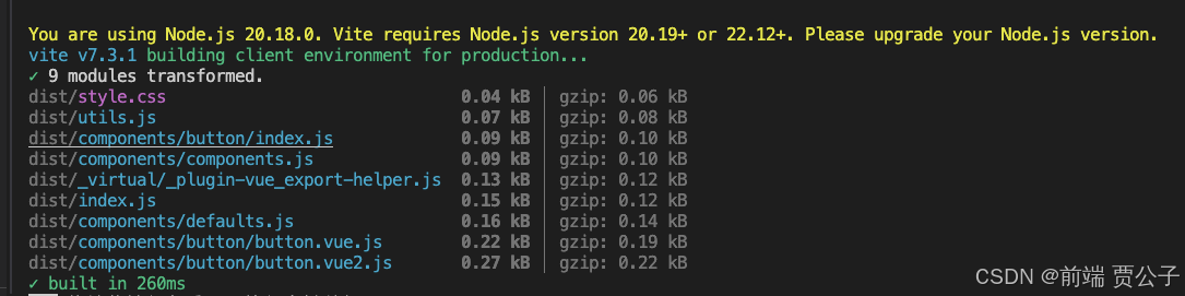 运行结果如下,我们成功打包了我们的组件库。