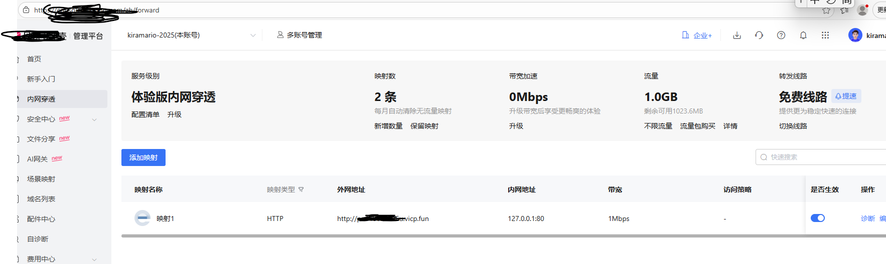 本人用的huashengke,那个需要实名和付钱,9.9可以映射2个端口,有公网服务器的话可以自己部署开源FRP。我把80穿出去了