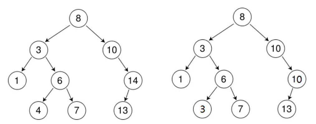 - 右子树不为空,则右子树上所有节点的值都大于等于根节点的值