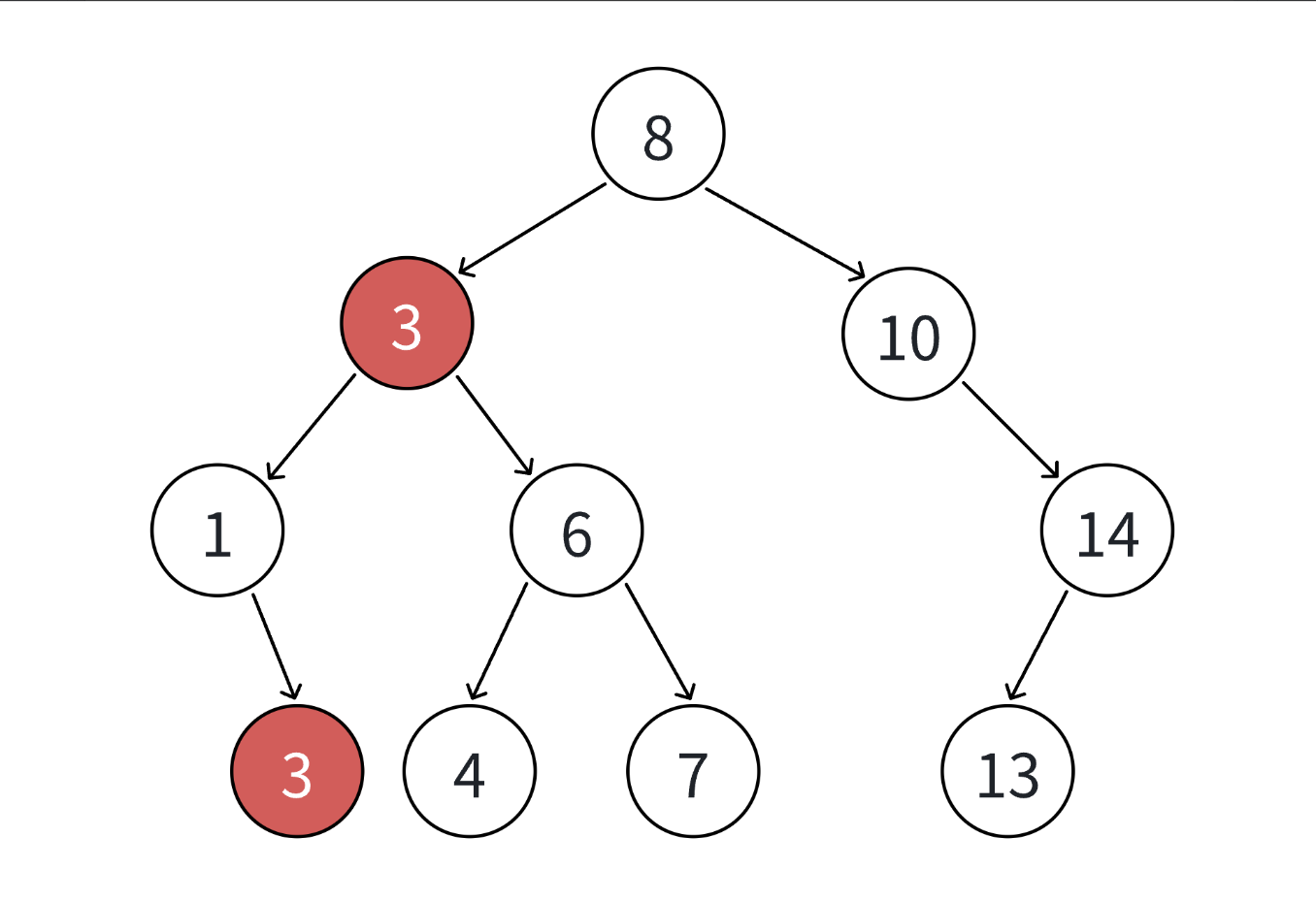 - 若不支持重复值插入,遇到与当前节点值相等的情况则返回插入失败。
