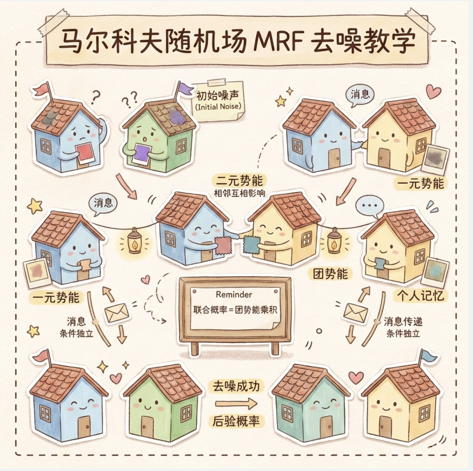 3.所有代码均可直接运行(Mac 系统兼容),通过可视化对比能直观理解核心概念,建议动手修改参数(如 MRF 的 beta、BP 的观测值)加深理解。