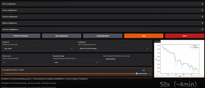 - 监控和部署: 训练期间,你可以使用内置监视器:它支持记录到TensorBoard 、Weights & Biases 、MLflow等,以及其原生的LlamaBoard。