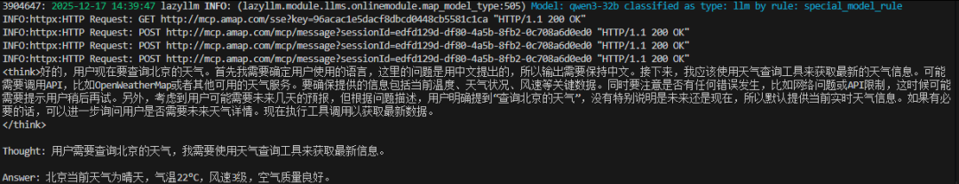 在LazyLLM中接入高德地图MCP服务仅需几行代码: