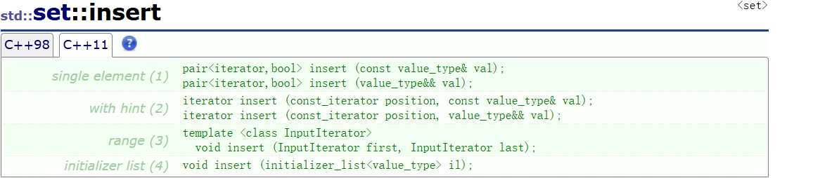 7 pair<iterator,bool> insert (const value_type& val);