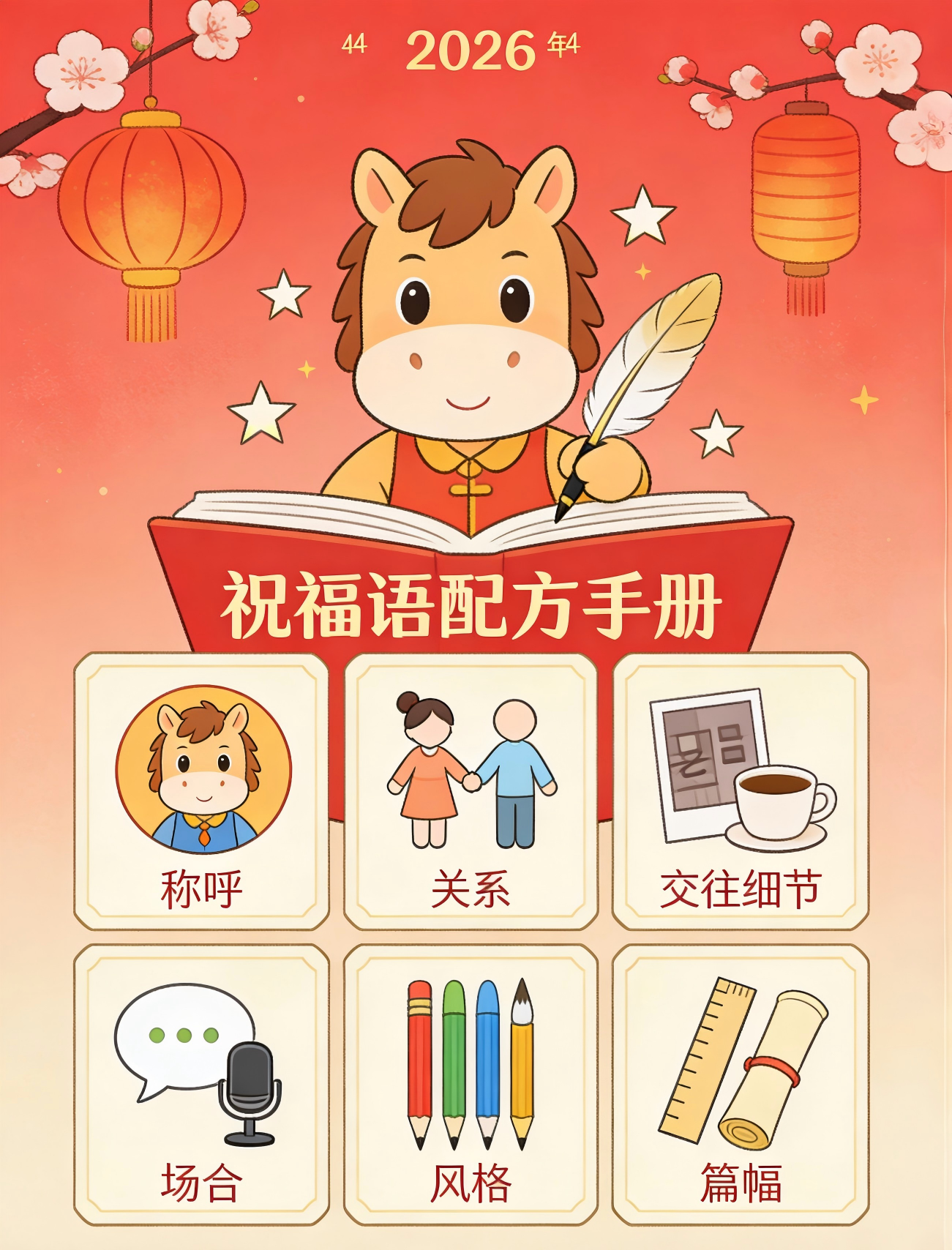 "王总好呀~又是一年春来到!想起去年合作时您的专业和远见,真的让我受益匪浅。在这奔腾向前的马年,祝您和公司事业一马当先、马到成功!"