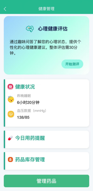 老去的路上,健康与安全,是子女最放不下的牵挂。京能天云智慧康养APP,活成了父母身边24小时的"贴心管家"。用药智能提醒准时响起,再也不怕父母漏服、断药,药品余量不足时还会自动提示补货,把细致的关怀藏在每一个细节里;健康档案可视化功能,长期跟踪血压、睡眠等身体数据,变化趋势一目了然,子女远在他乡,也能随时掌握父母的健康状况;内置的情绪与认知评估模块,能及时识别情绪波动与认知状态,防患于未然。而当危险来临,一键紧急联络功能可快速呼叫120或指定亲属,异常情绪预警、行为状态报告,更让安全防护无死角,让子女的安心,从不掉线。