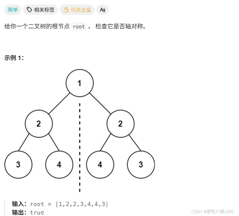 首先第一步,确认递归函数的参数和返回值 。这里我们因为是对树进行递归,且主要是判断是否对称,不需要有其他数组啊数啊来记录某一个结果什么的,所以参数就是root;返回值也很好理解了,就是true和false。