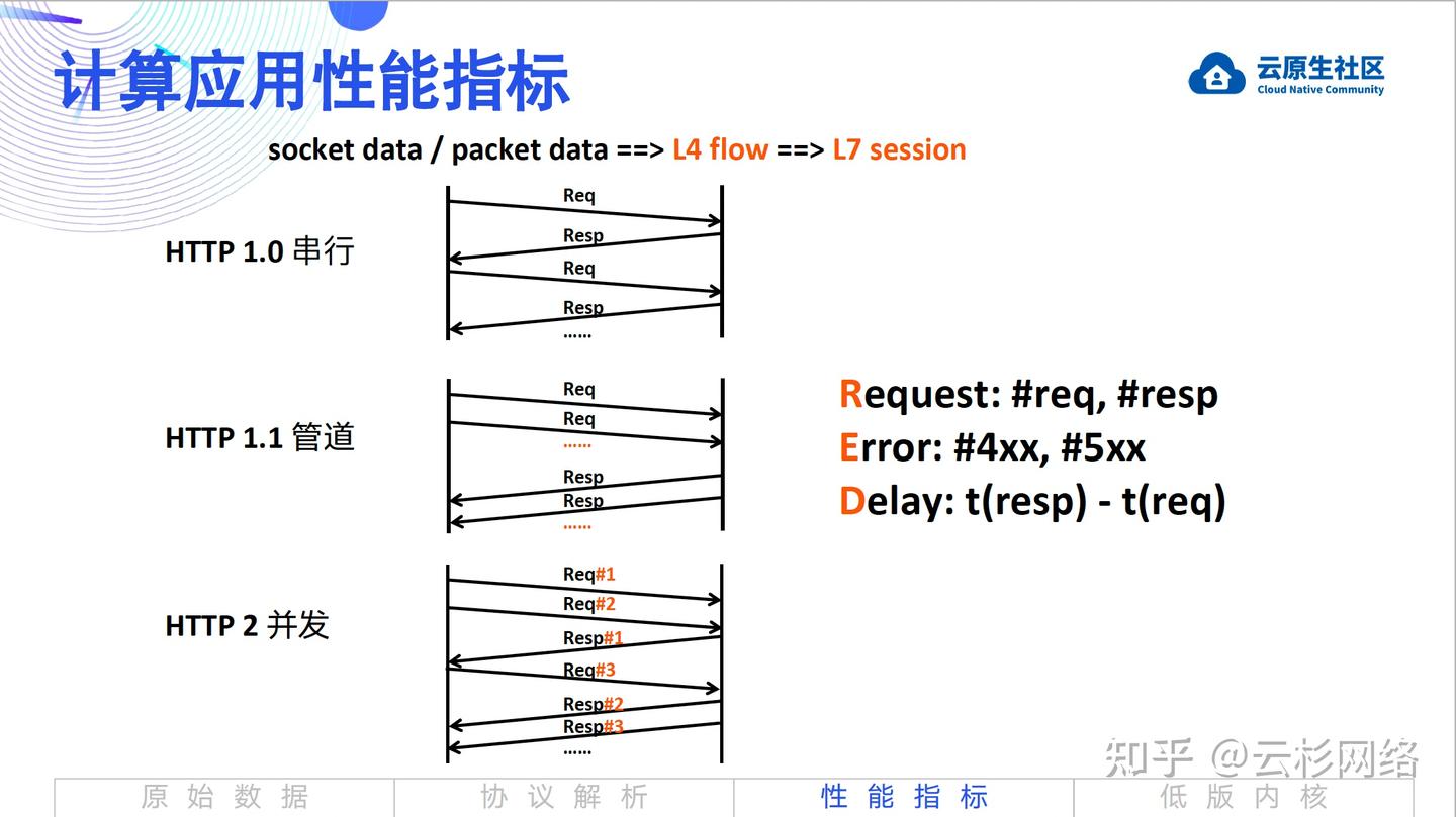 可以通过数请求和响应的个数来获取吞吐量,同时还可以根据响应状态码、耗时等信息计算 Error 和 Delay 指标。