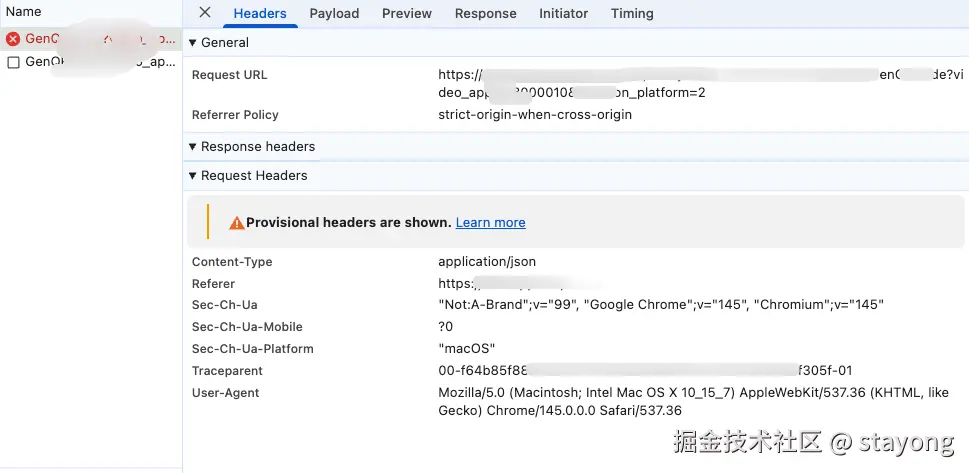 在做跨域请求时,你是否遇到过这种怪事:在 Network 面板里,OPTIONS 预检请求返回了 200 OK,看起来一切正常;但紧随其后的 POST 请求却直接报了 CORS error,甚至点开详情还提示 "Provisional headers are shown" 。