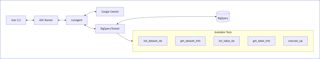Google 的 Agent Development Kit (ADK) 提供了一个结构化框架,用于构建可用于生产的 人工智能座席,这些座席能够查询数据库、提取信息,并以人类可读的方式呈现,而无需事先了解数据库架构或具备 SQL 编程经验。 Gemini 负责推理和自然语言理解,而 ADK 确保所有数据库访问均受控且可监控。