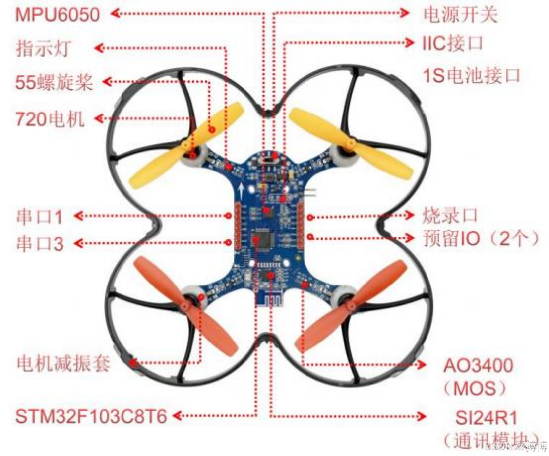 机架的选择直接决定了硬件电路和软件程序的设计方案,本次设计的目标为有刷飞行器。