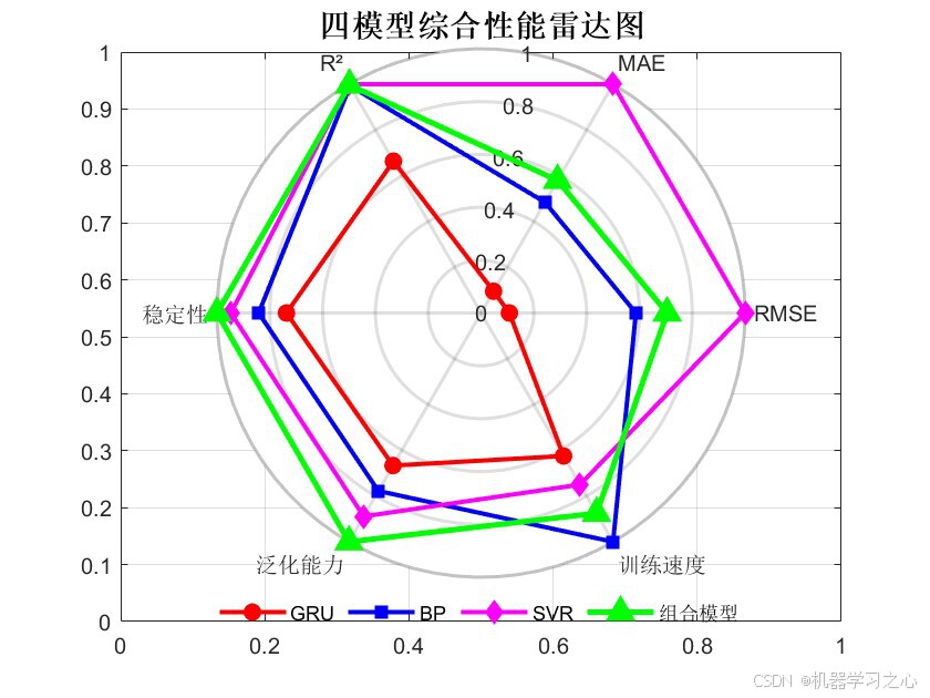 - 生成四模型对比图、误差分布图、雷达图等。