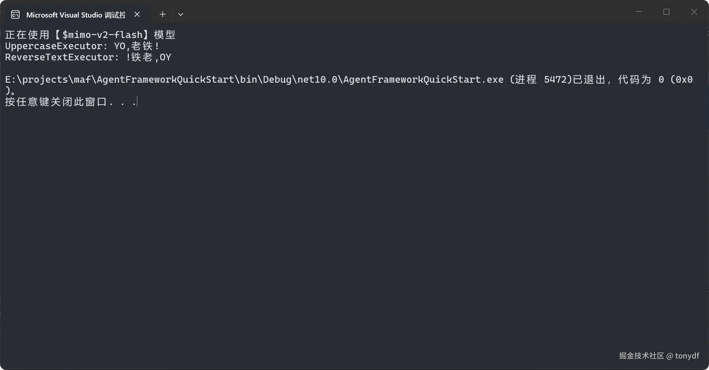 这是官方第一个案例,这个例子里,并没有用到AI的能力,单纯体现的是MAF的原生框架能力。也就是说,我们使用MAF的场景,也可以是一些简单重复的有序场景,比如你原有业务系统里一些分步骤操作的模块,可以考虑接入MAF,改造成自动化的模块,提高效率。